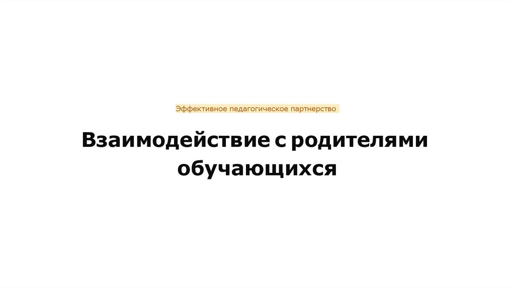 Эффективное педагогическое партнерствоВзаимодействие с родителями
