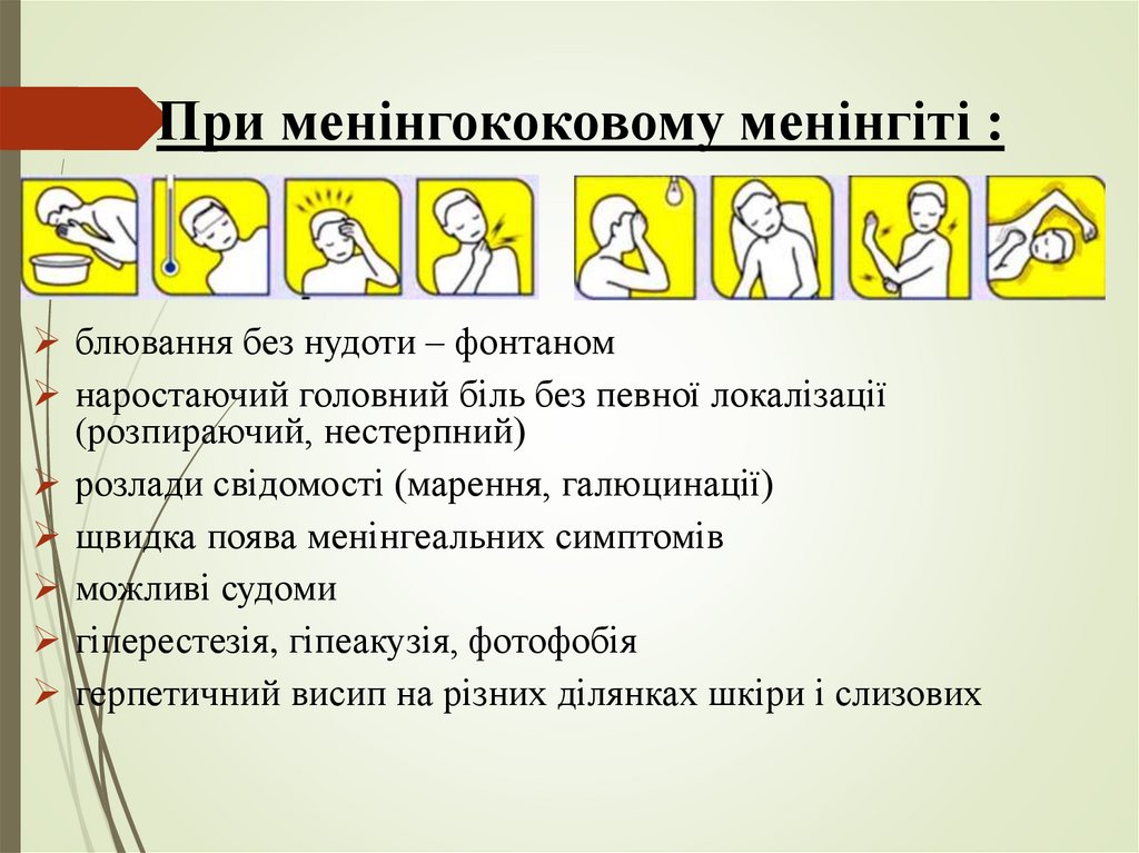 При менінгококовому менінгіті :блювання без нудоти – фонтаном