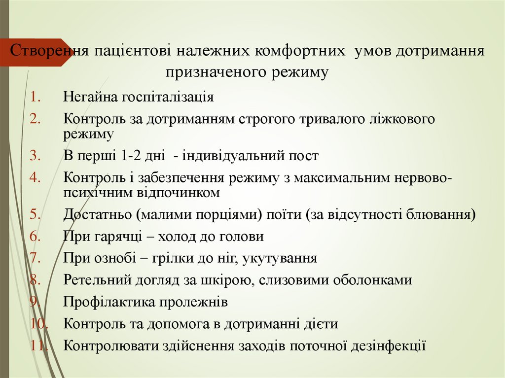 37. Створення пацієнтові належних комфортних умов дотримання призначеного режиму