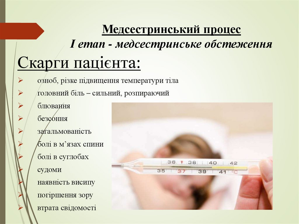 Скарги пацієнта:озноб, різке підвищення температури тіла