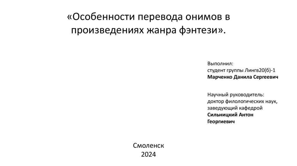 «Особенности перевода онимов впроизведениях жанра фэнтези».