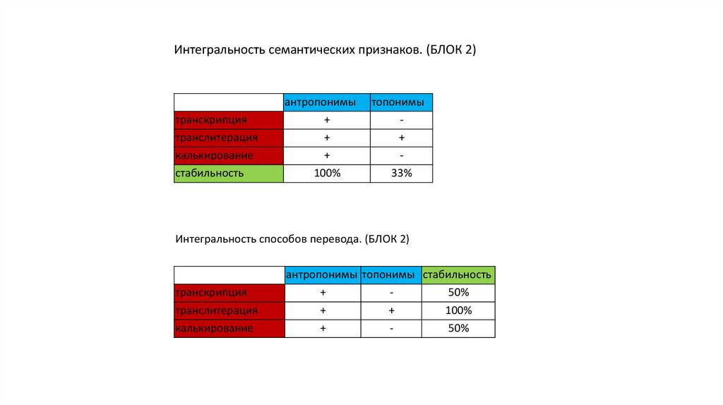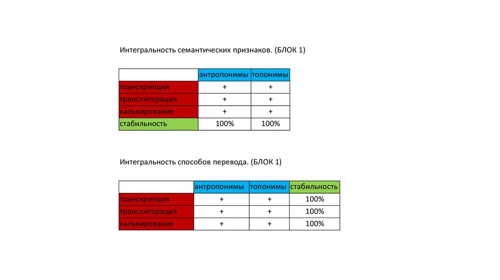 Интегральность семантических признаков. (БЛОК 2)транскрипция