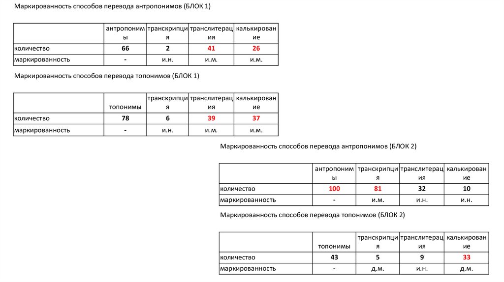 Маркированность способов перевода антропонимов (БЛОК 1)антропоним транскрипци транслитерац калькирован
