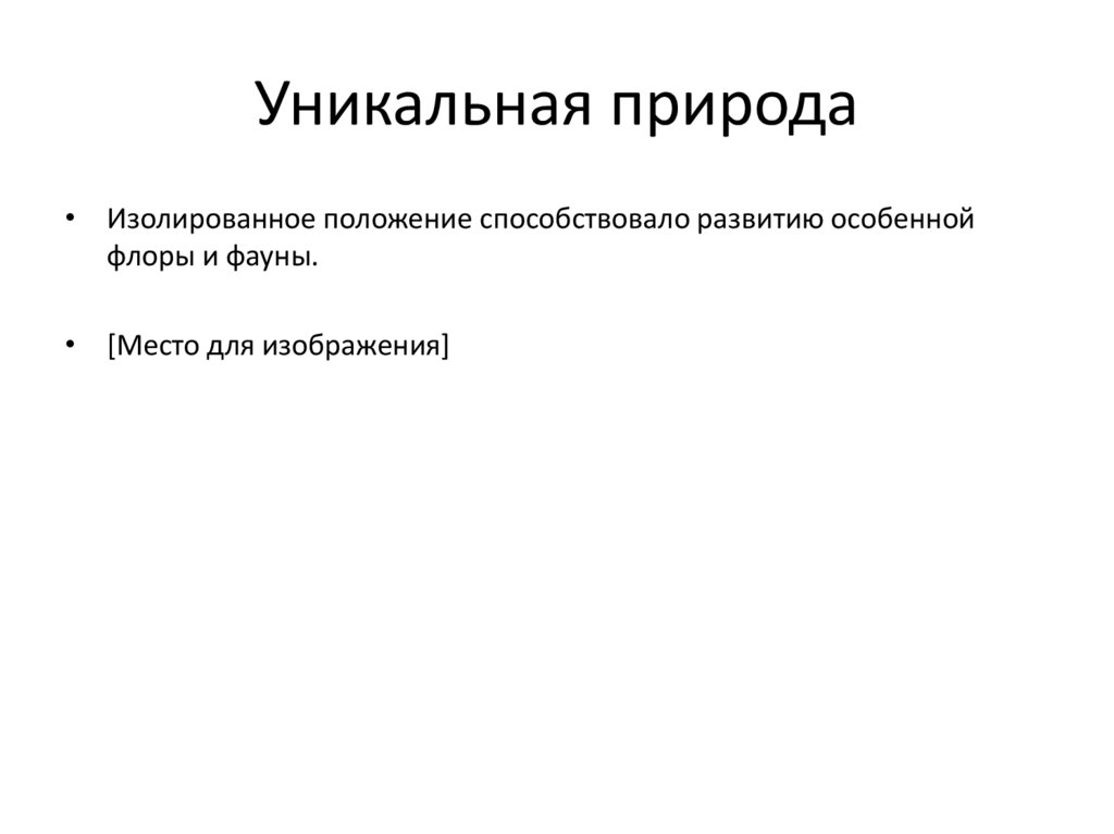 Уникальная природа• Изолированное положение способствовало развитию особенной