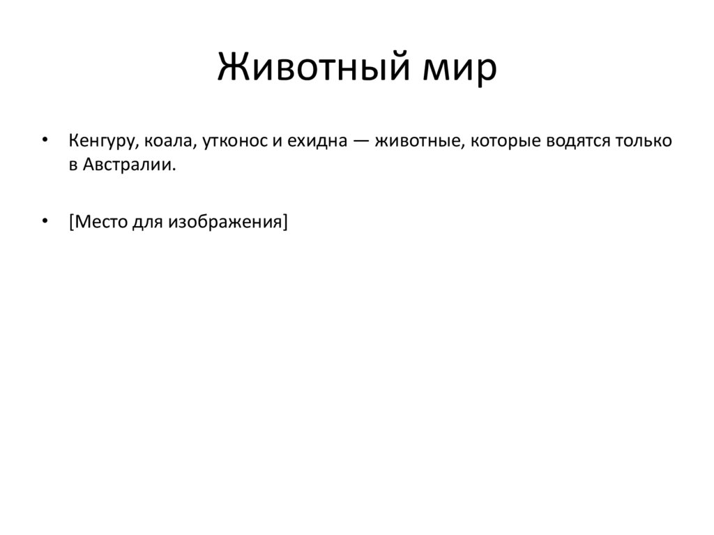 Животный мир• Кенгуру, коала, утконос и ехидна — животные, которые водятся только