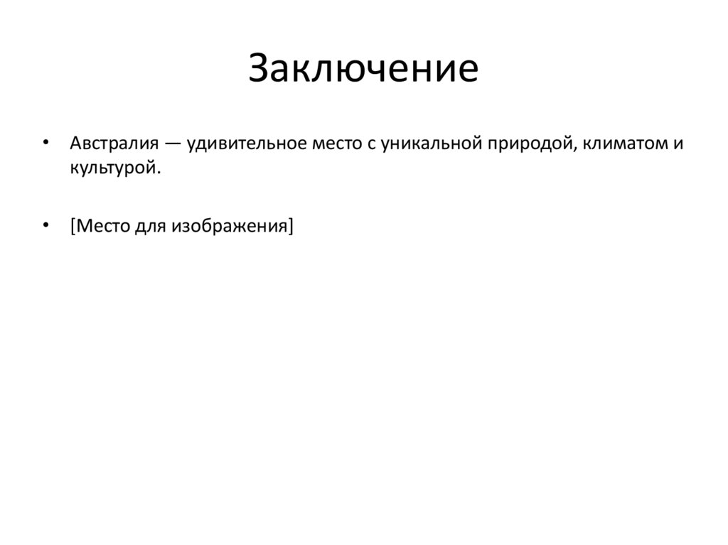 Заключение• Австралия — удивительное место с уникальной природой, климатом и