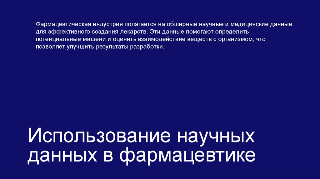 Фармацевтическая индустрия полагается на обширные научные и медицинские данныедля эффективного создания лекарств. Эти данные помогают определить