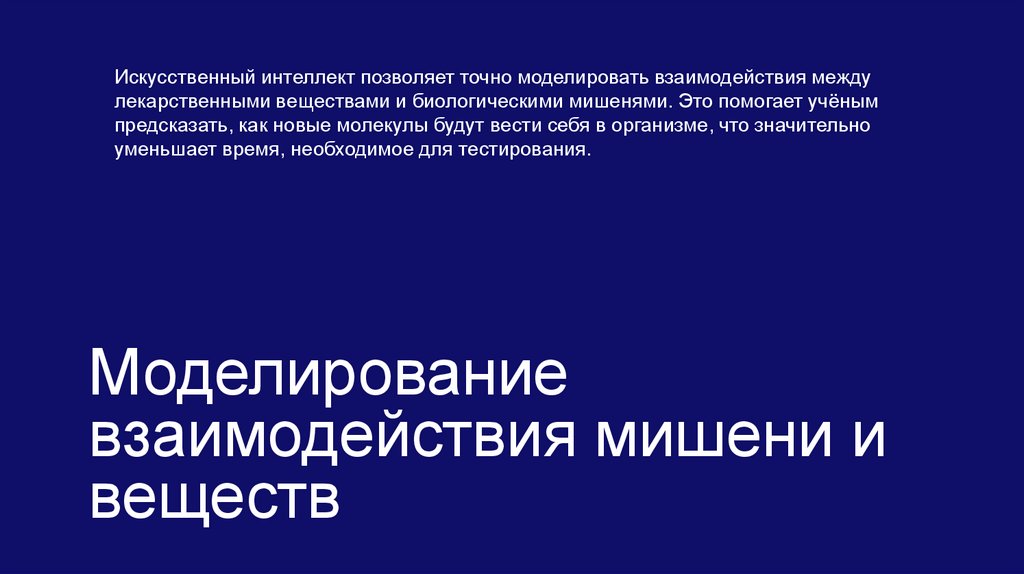 Искусственный интеллект позволяет точно моделировать взаимодействия междулекарственными веществами и биологическими мишенями. Это помогает учёным