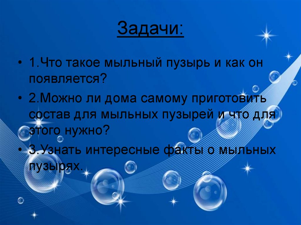 Задачи:• 1.Что такое мыльный пузырь и как он