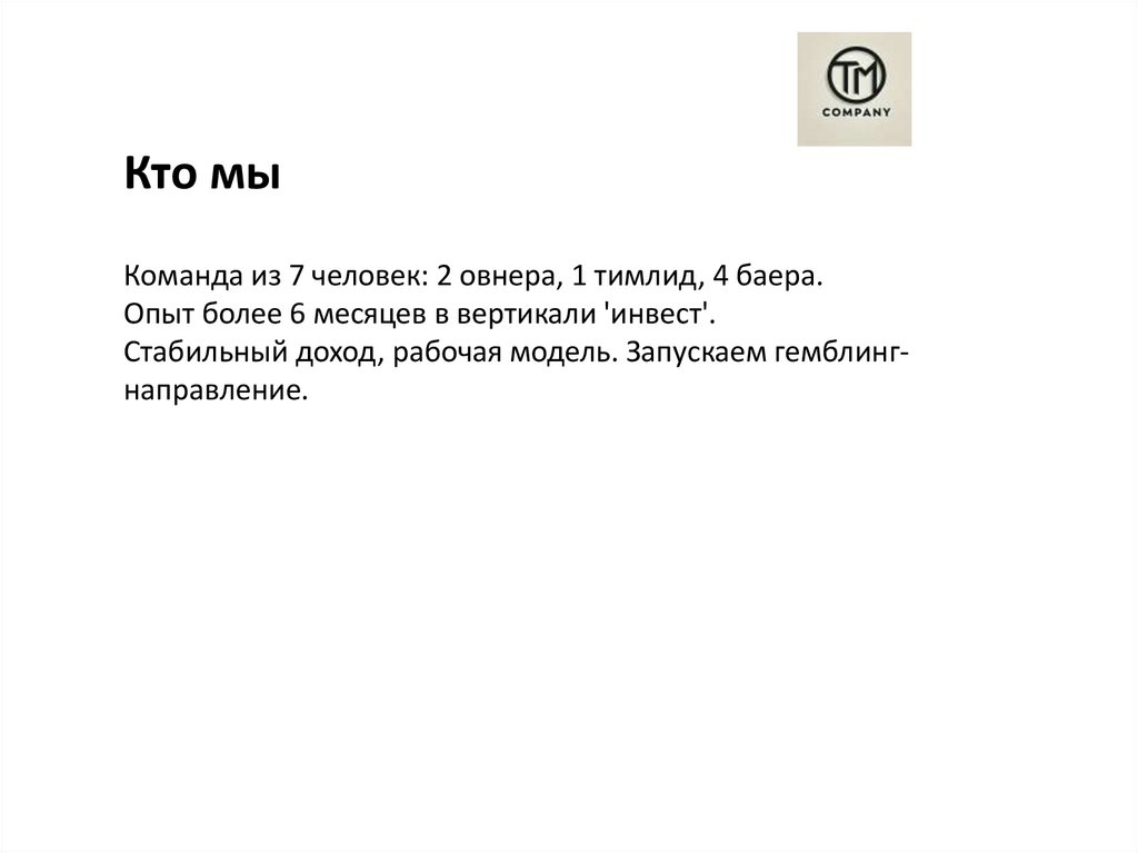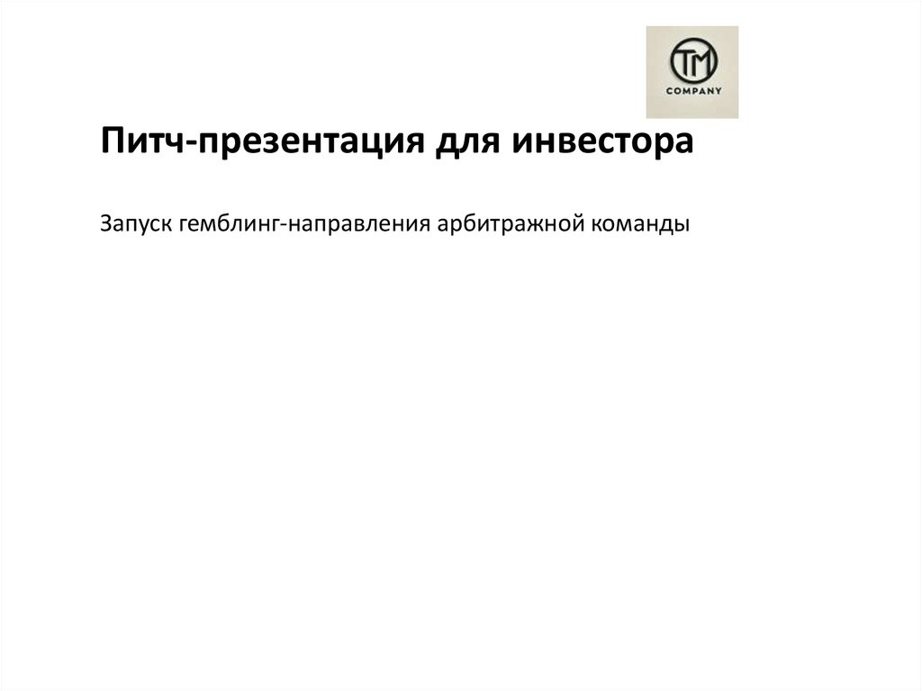 Питч-презентация для инвестораЗапуск гемблинг-направления арбитражной команды