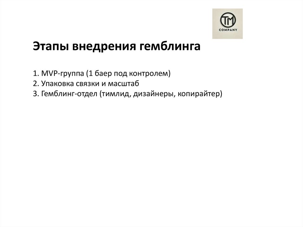 Этапы внедрения гемблинга1. MVP-группа (1 баер под контролем)