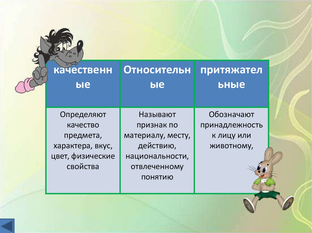 качественн Относительн притяжателые