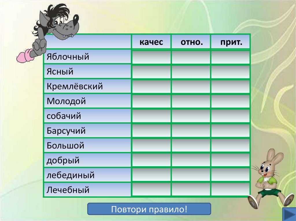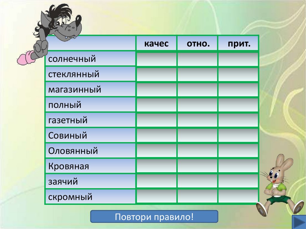 Разряд имен прилагательных. Интерактивный тест