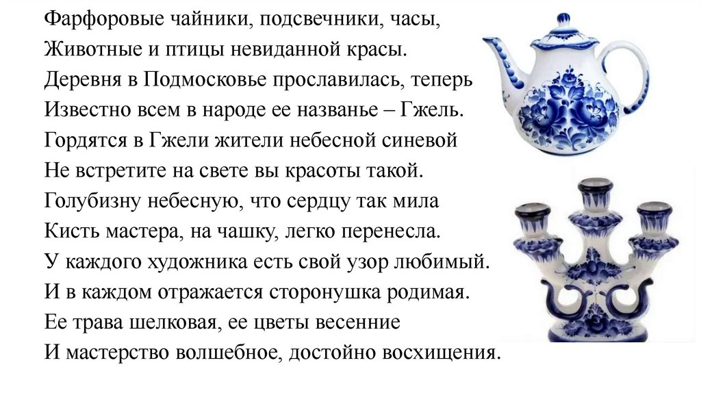 Известно всем в народе ее названье – Гжель.