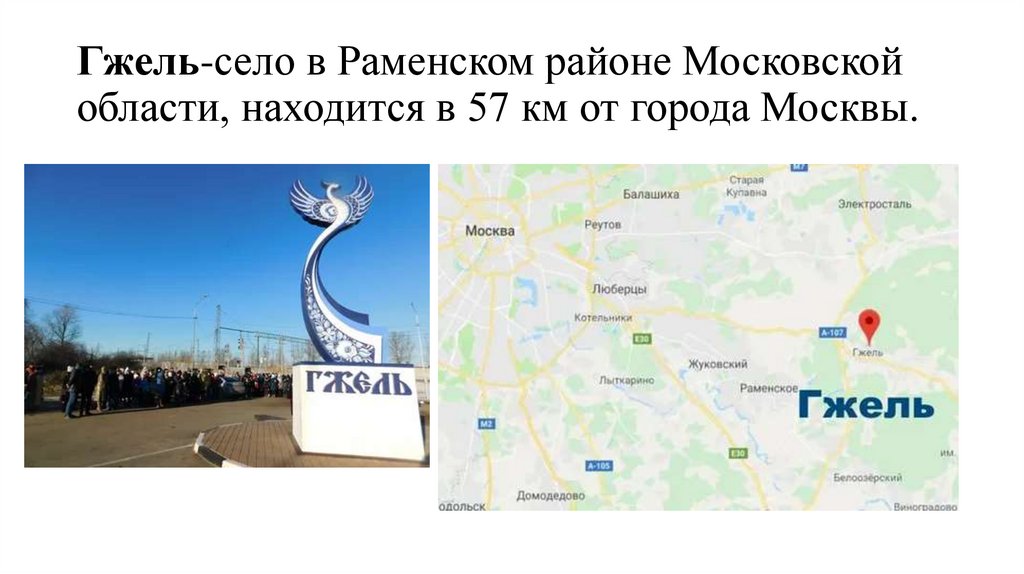 8. Гжель-село в Раменском районе Московской области, находится в 57 км от города Москвы.