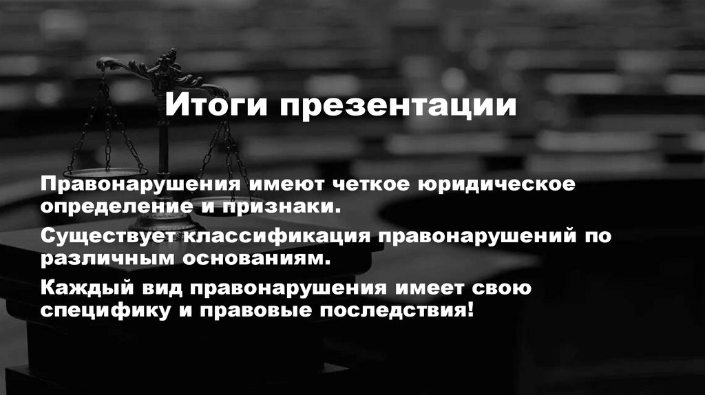 Итоги презентацииПравонарушения имеют четкое юридическое