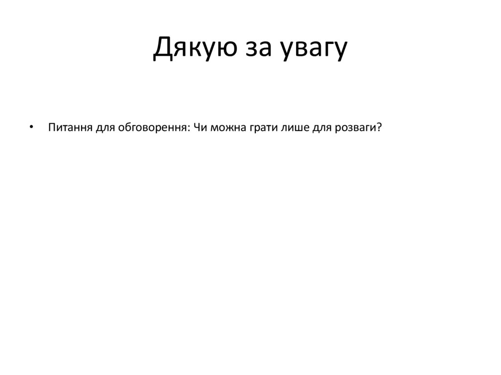 Дякую за увагуПитання для обговорення: Чи можна грати лише для розваги?
