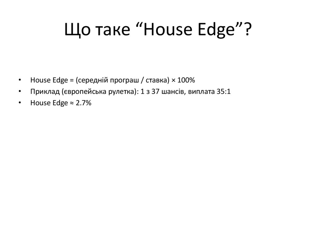 Що таке “House Edge”?House Edge = (середній програш / ставка) × 100%