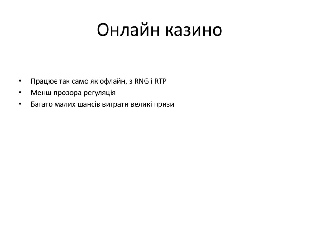 Онлайн казиноПрацює так само як офлайн, з RNG і RTP