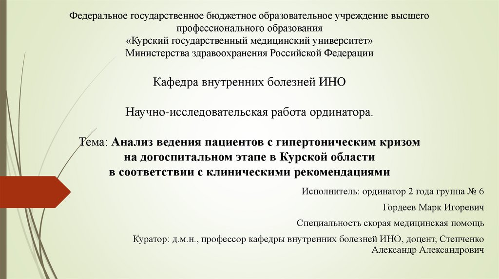 анализ ведения пациентов с гипертоническимкризом на догоспитальном этапе в Курской