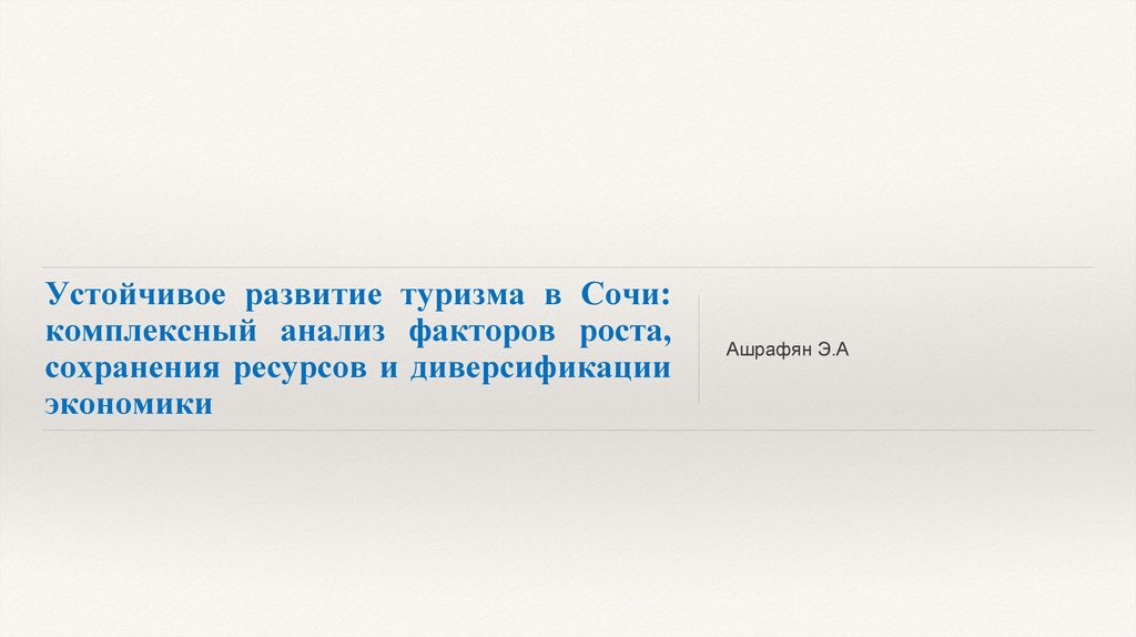 Устойчивое развитие туризма в Сочи: комплексный анализ факторов роста, сохранения ресурсов и диверсификации экономики