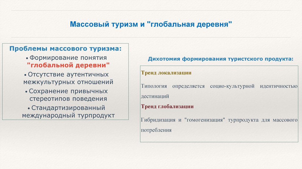 Массовый туризм и "глобальная деревня"Проблемы массового туризма: