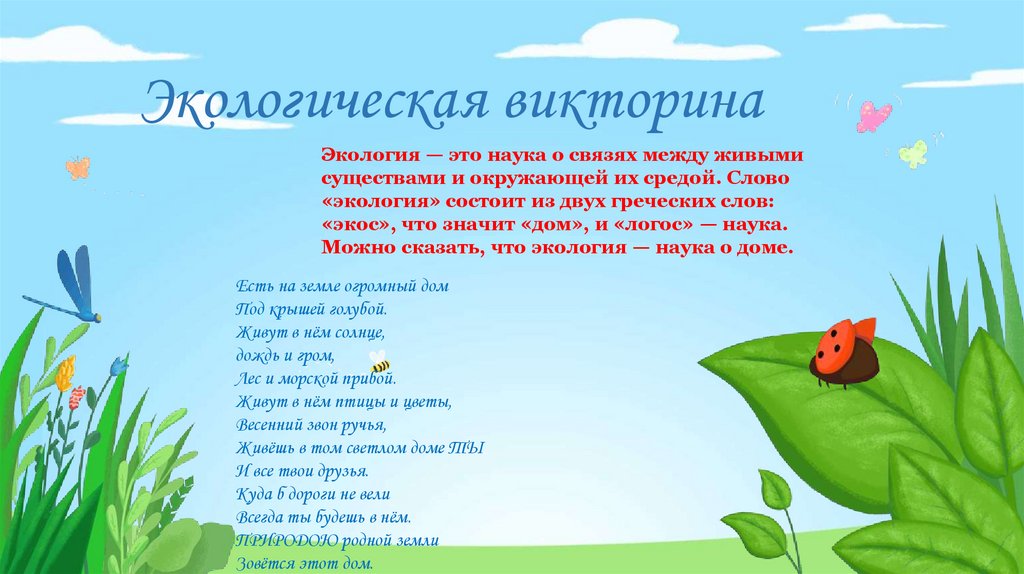 Экология — это наука о связях между живымисуществами и окружающей их средой. Слово