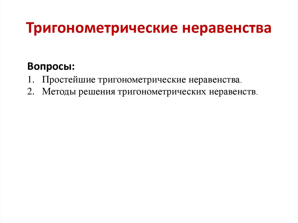 Вопросы:1. Простейшие тригонометрические неравенства.