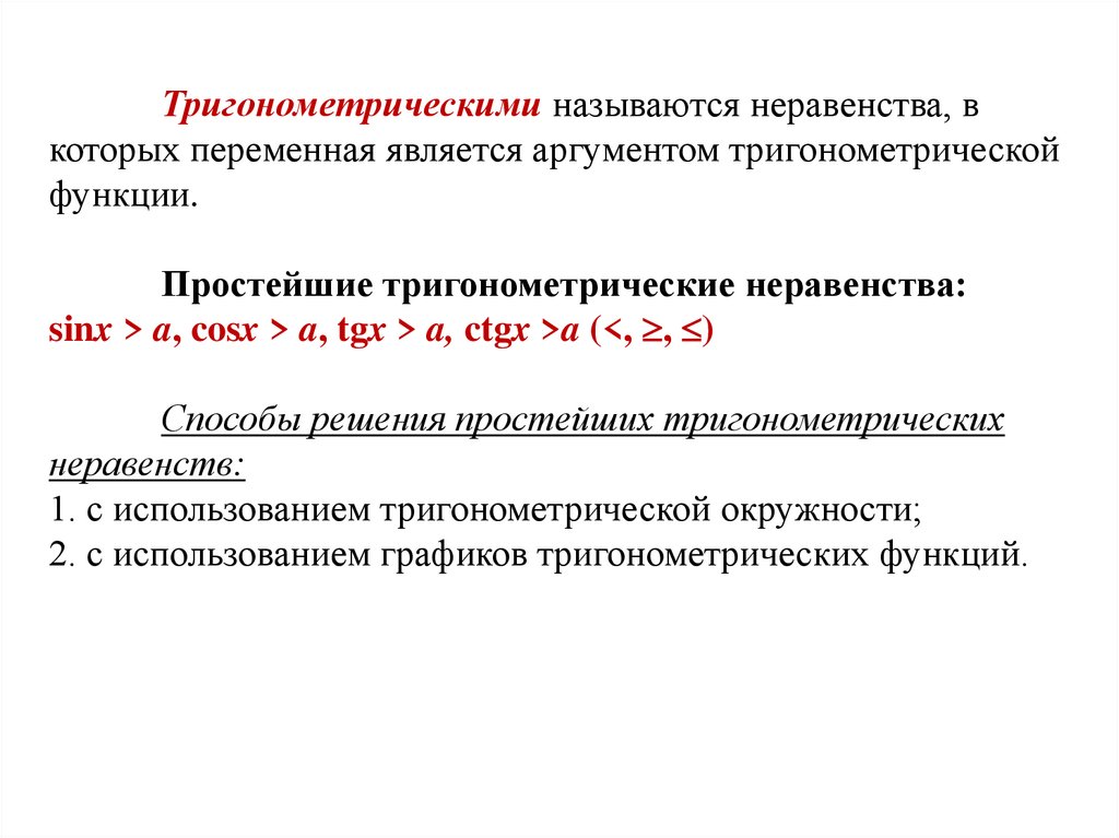 Тригонометрическими называются неравенства, вкоторых переменная является аргументом тригонометрической