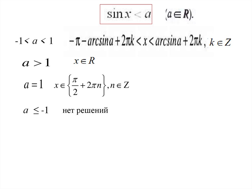 -1< а < 1 x arcsin a 2 n ; arcsin a 2 n , n