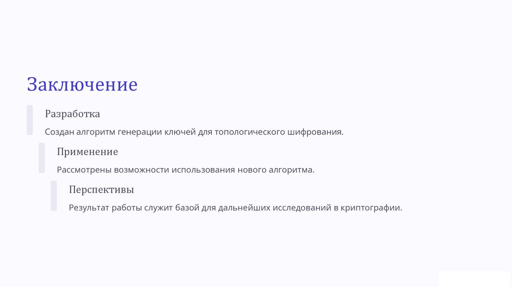Результат работы служит базой для дальнейших исследований в криптографии.
