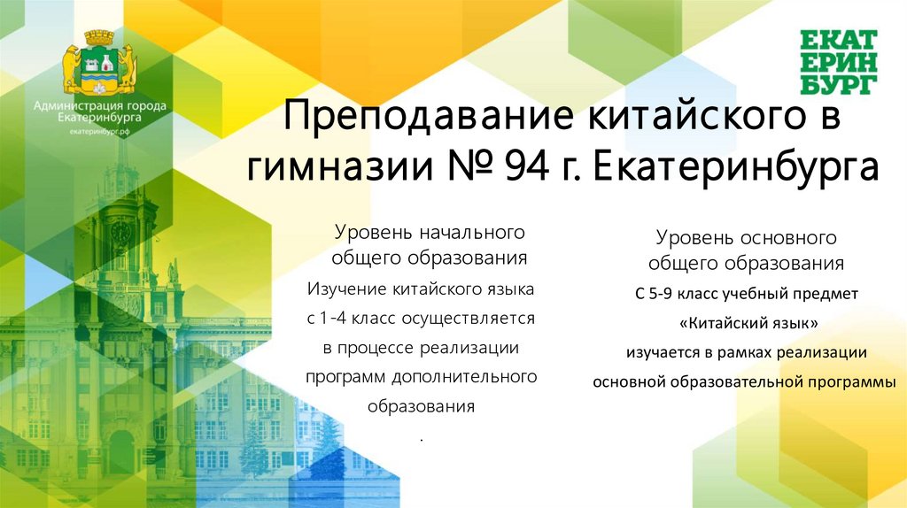 Преподавание китайского вгимназии № 94 г. Екатеринбурга