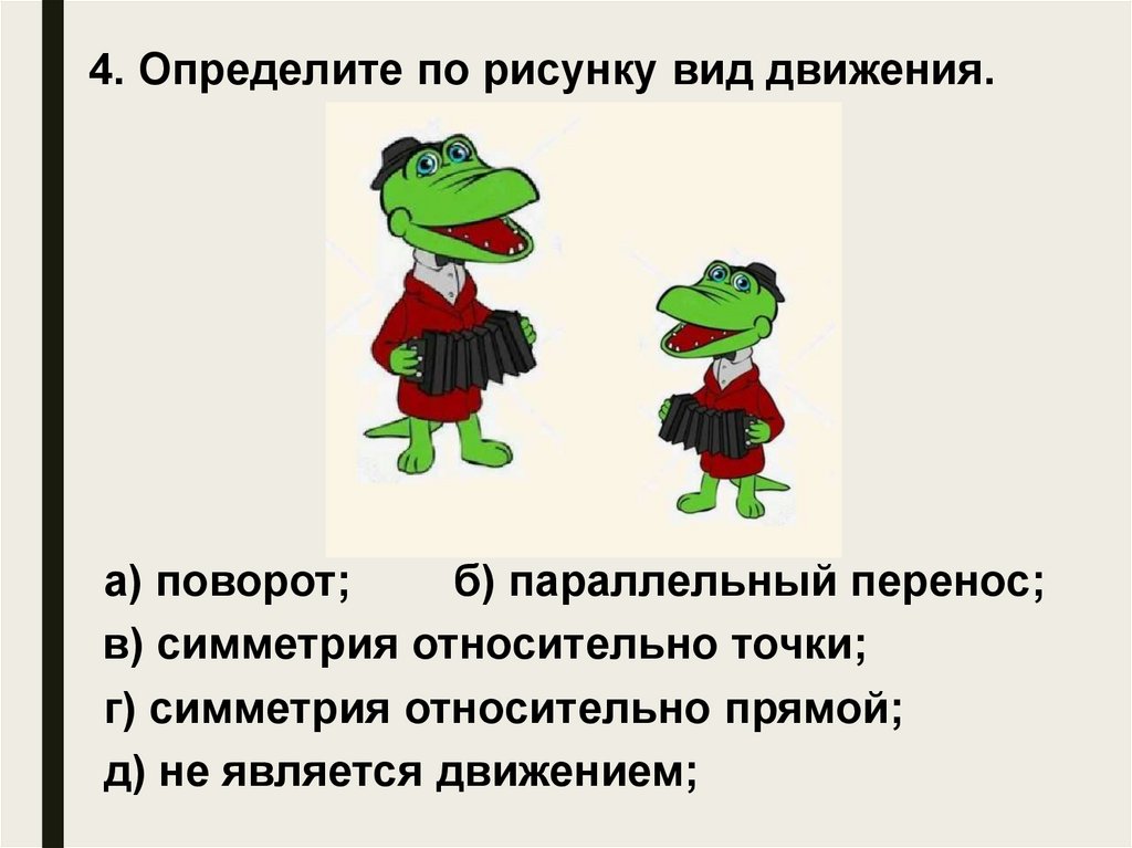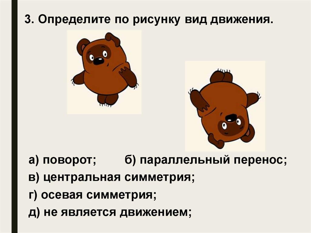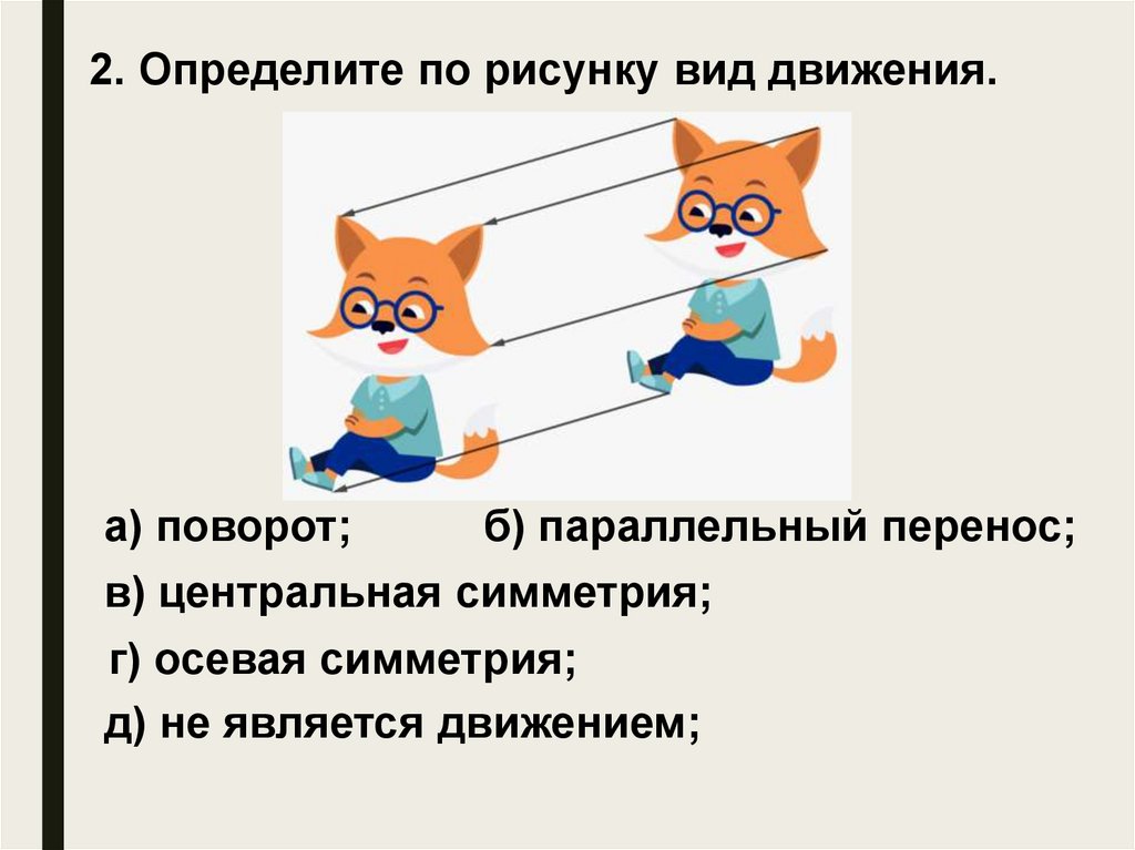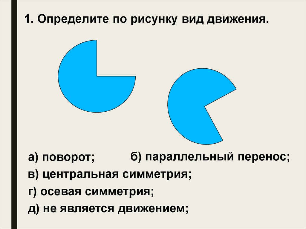 1. Определите по рисунку вид движения.б) параллельный перенос;