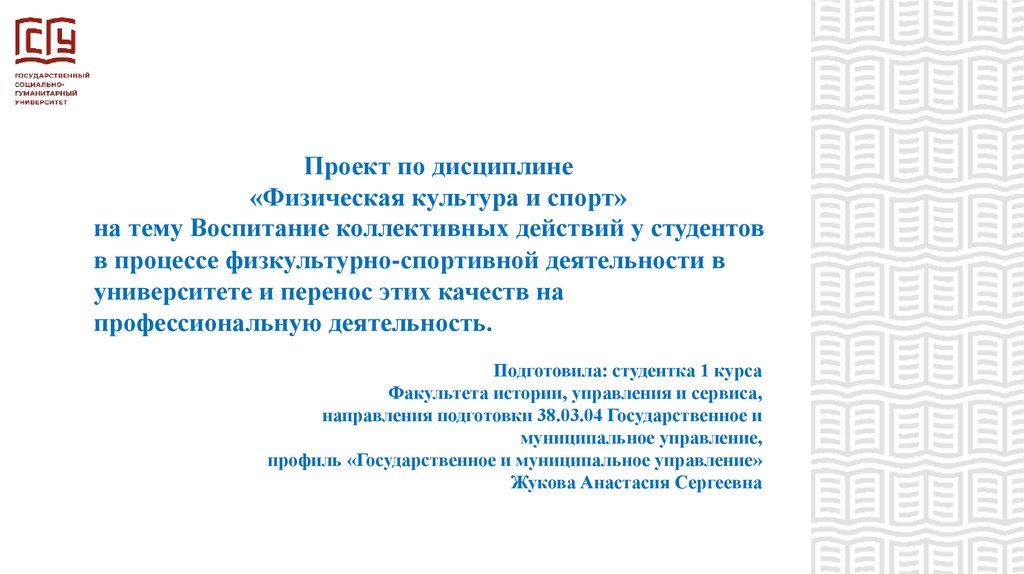 Проект по дисциплине«Физическая культура и спорт»