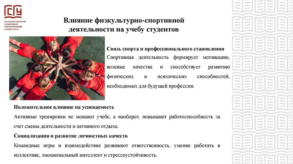 Влияние физкультурно-спортивнойдеятельности на учебу студентов