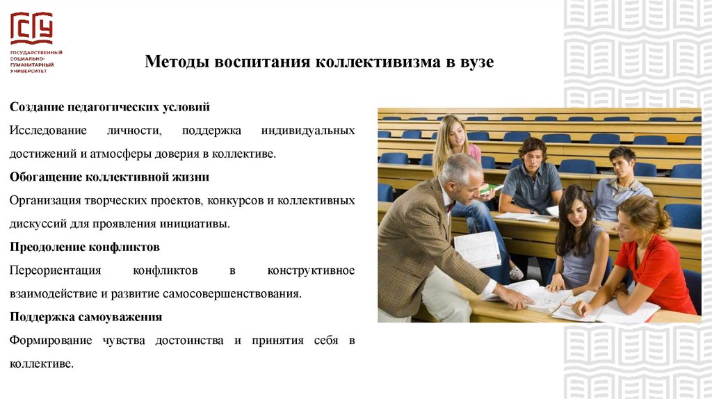 Методы воспитания коллективизма в вузеСоздание педагогических условий