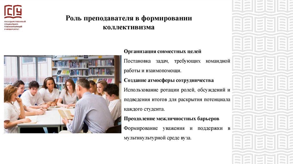 Роль преподавателя в формированииколлективизма