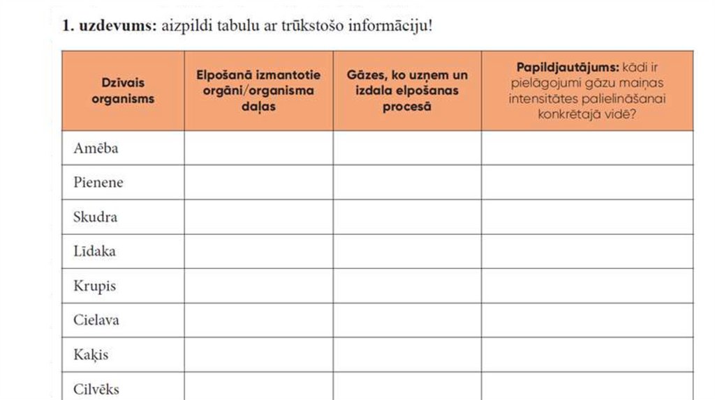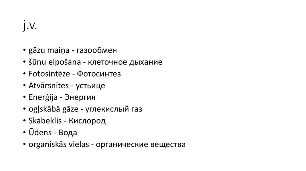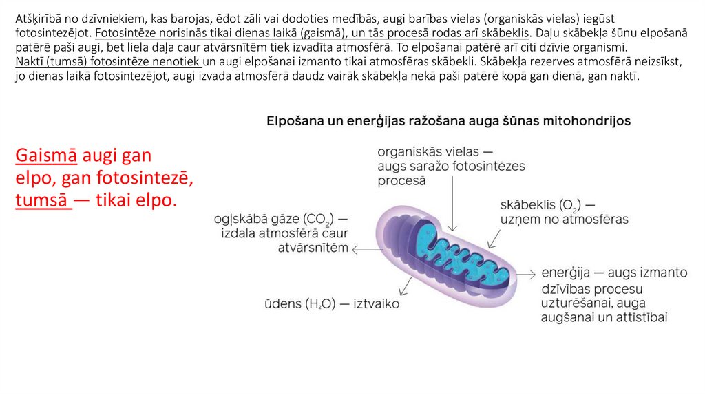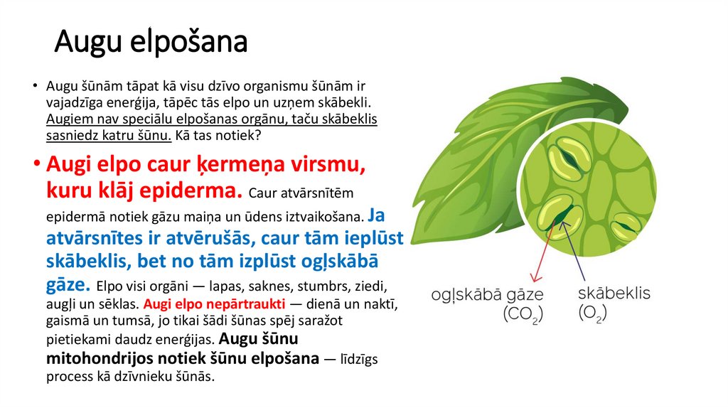 • gāzu maiņa - газообмен• šūnu elpošana - клеточное дыхание