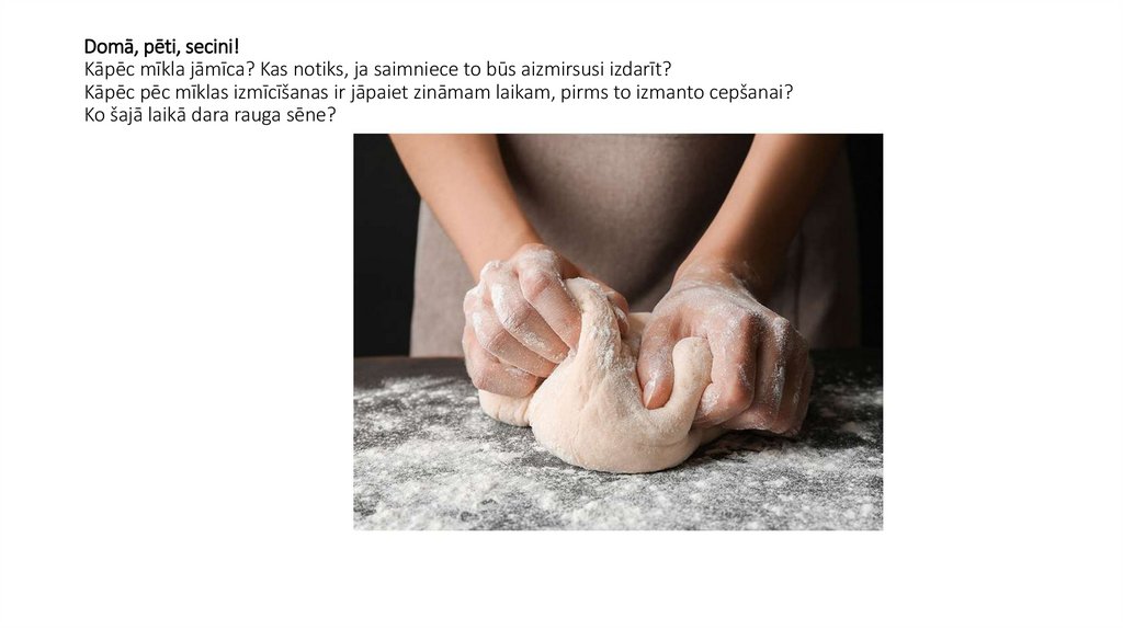 13. Domā, pēti, secini! Kāpēc mīkla jāmīca? Kas notiks, ja saimniece to būs aizmirsusi izdarīt? Kāpēc pēc mīklas izmīcīšanas ir