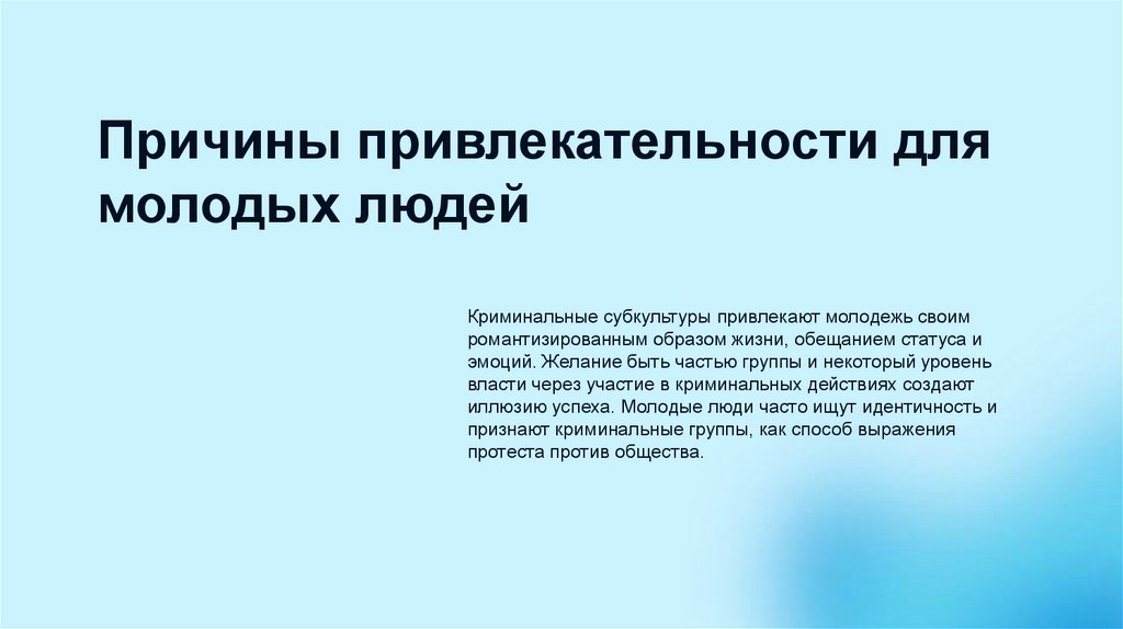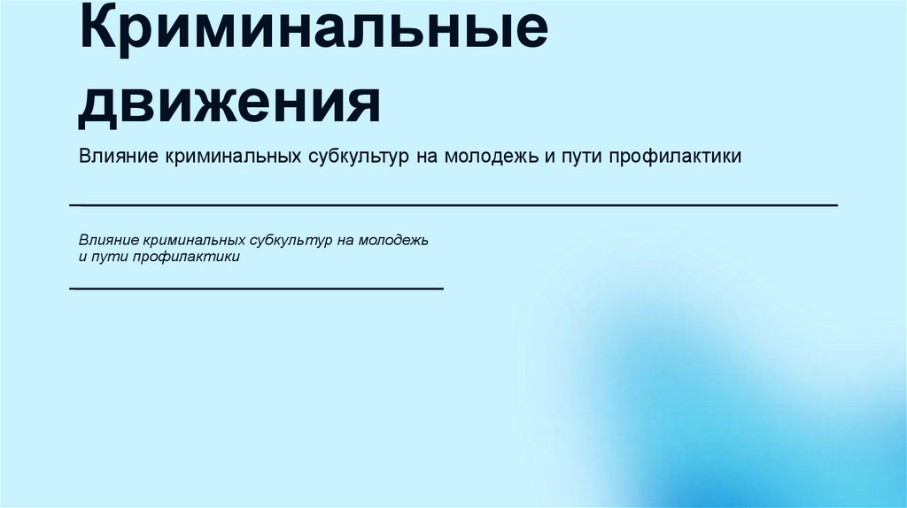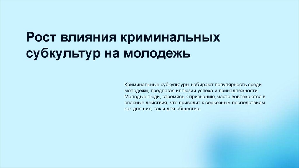 Влияние криминальных субкультур на молодежь и пути профилактики