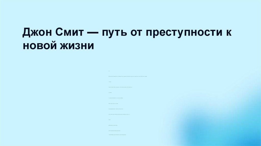 Джон Смит (имя изменено для конфиденциальности) вырос в неблагополучном районе, где криминал был частью повседневной жизни. В подростковом возрасте он вступил в преступную группировку и участвовал в уличных преступлениях.