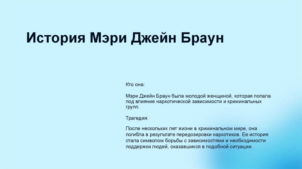 Мэри Джейн Браун была молодой женщиной, которая попала