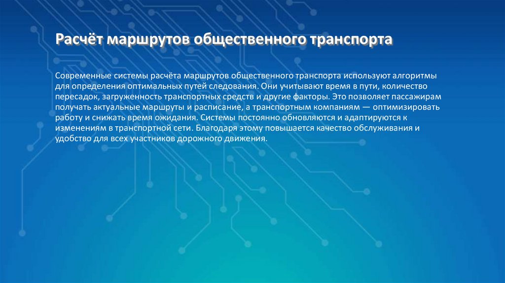 пересадок, загруженность транспортных средств и другие факторы. Это позволяет пассажирам
