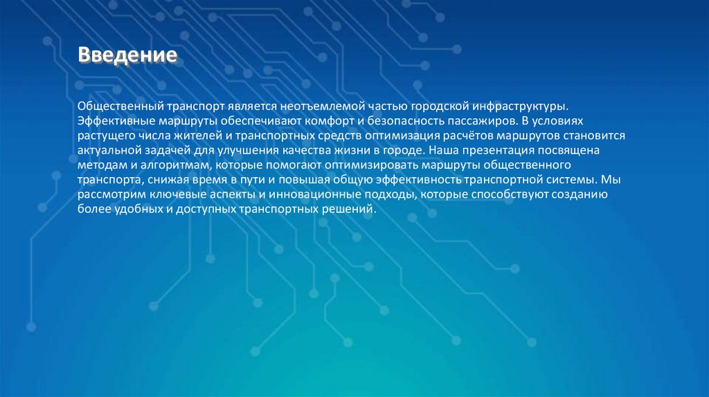 ВведениеОбщественный транспорт является неотъемлемой частью городской инфраструктуры.
