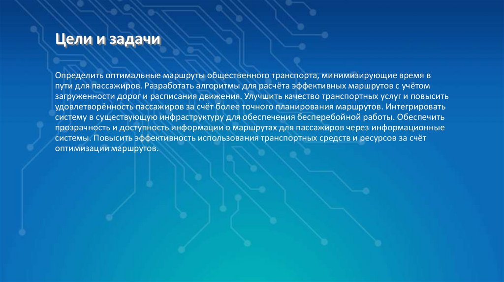 Цели и задачиОпределить оптимальные маршруты общественного транспорта, минимизирующие время в