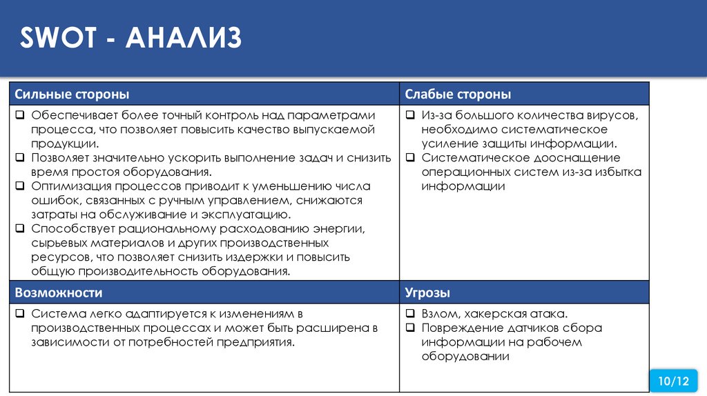 SWOT - АНАЛИЗСильные стороны