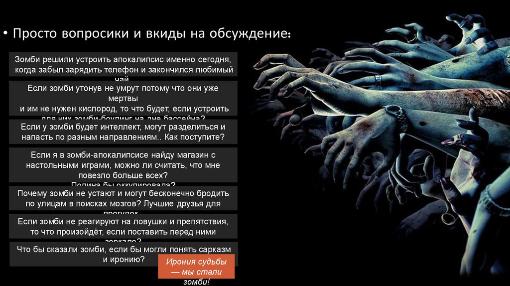 • Просто вопросики и вкиды на обсуждение:Зомби решили устроить апокалипсис именно сегодня,