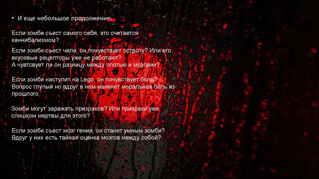 • И еще небольшое продолжение:Если зомби съест самого себя, это считается