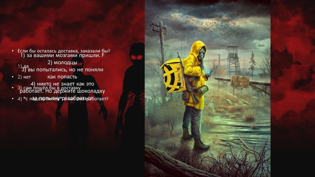 • Если бы осталась доставка, заказали бы?1) за вашими мозгами пришли. F