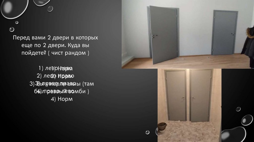 Перед вами 2 двери в которыхеще по 2 двери. Куда вы